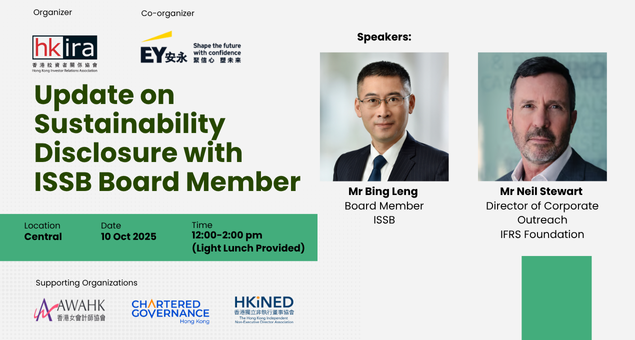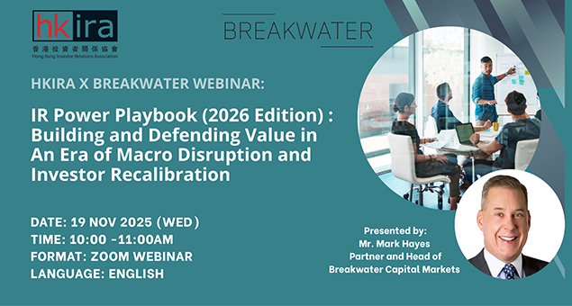 HKIRA Board/Corporate Training ProgramWith the aim of advancing the awareness of the importance, value and knowledge of IR, HKIRA now offers tailor-made Corporate Training Programs for listed companies with a focus on strategic and technical subject matters associated with the IR function as a whole. Experienced trainers will conduct the programs or in-house workshops to Boards and Senior Executives as well as current and potential IR practitioners.